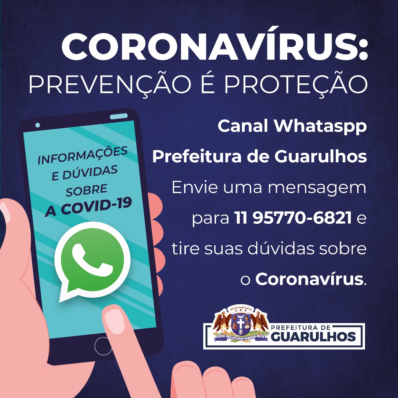 A Prefeitura de Guarulhos disponibilizou nesta quinta-feira (17) uma ferramenta interativa gratuita via WhatsApp para auxiliar a população a esclarecer diversas dúvidas sobre o novo coronavírus. Para acessar o serviço, basta o munícipe enviar um cumprimento para o número (11) 95770-6821 e receberá as instruções para prosseguir com a conversa.