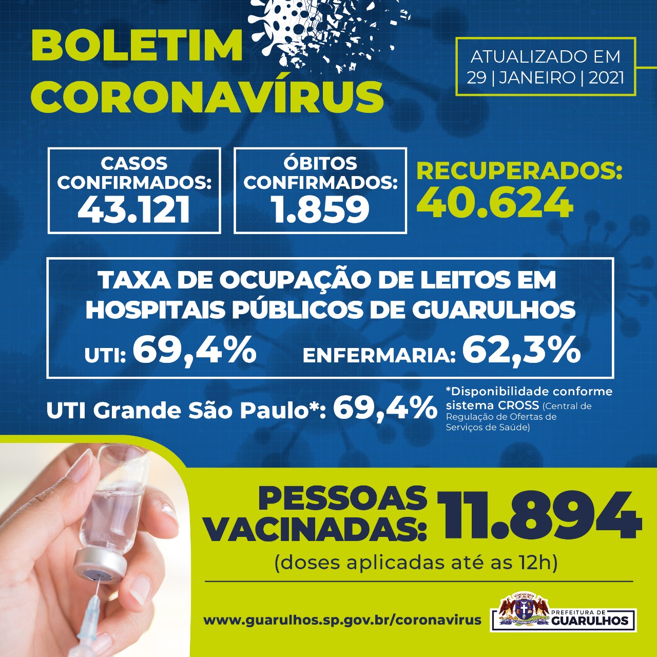 Dados da Vigilância Epidemiológica Municipal desta sexta-feira (29/01/2021):