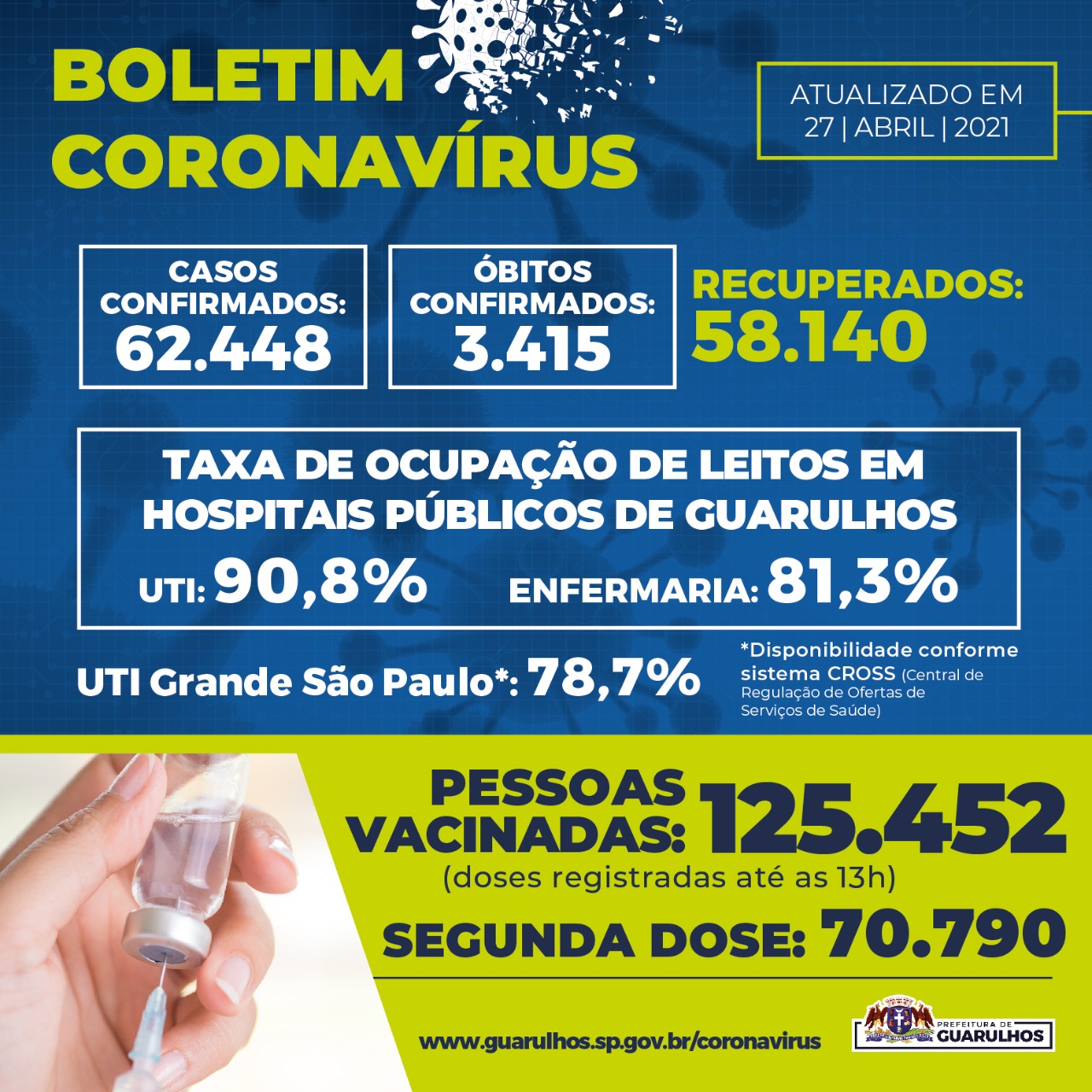 Dados da Vigilância Epidemiológica Municipal desta terça-feira (27/04/2021):