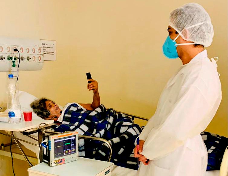 As transmissões são feitas por meio de aparelhos celulares e pela rede Wi-Fi do hospital, seguindo todas as orientações de segurança recomendadas pelo Ministério da Saúde.