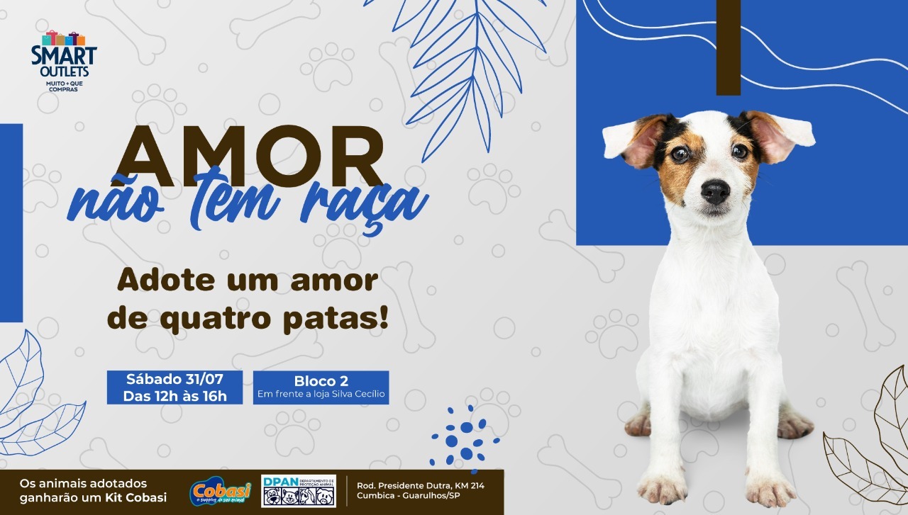 Da redação – Em parceria com o Departamento de Proteção Animal (DPAN) de Guarulhos, o centro de compras Smart Outlets em Cumbica (rodovia Presidente Dutra, km 214, sentido Rio de Janeiro) recebe neste sábado (31), das 12h às 16h, a feira de adoção de cães e gatos. Os pets estarão no bloco 2, em frente à loja Silva Cecílio.