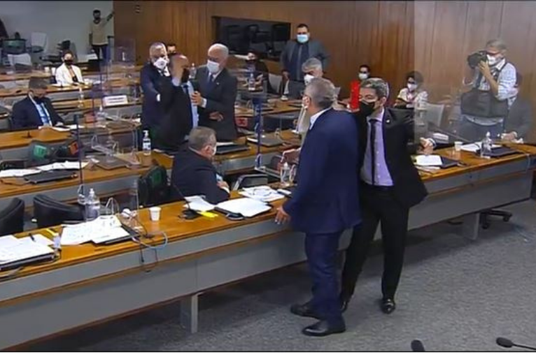 O tumulto começou quando Renan disse que há corrupção na gestão do presidente Jair Bolsonaro e citou como exemplo o fato de o governo ter feito contratos de compra de vacinas e insumos contra a pandemia com empresas agora investigadas.