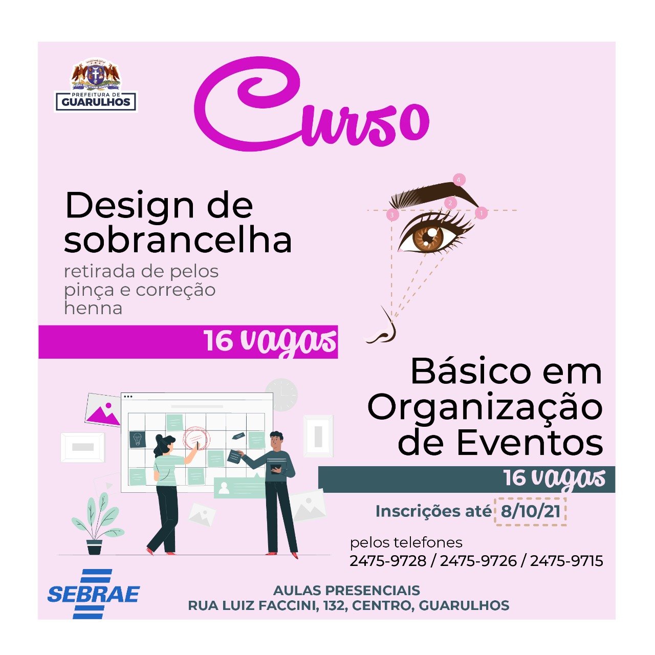 Da redação – A Secretaria do Trabalho de Guarulhos receberá até a próxima sexta-feira (8) as inscrições para mais dois cursos de qualificação profissional, de “design de sobrancelha com retirada de pelos com pinça e correção com henna” e “básico em organização de eventos”, ambos com 16 vagas.