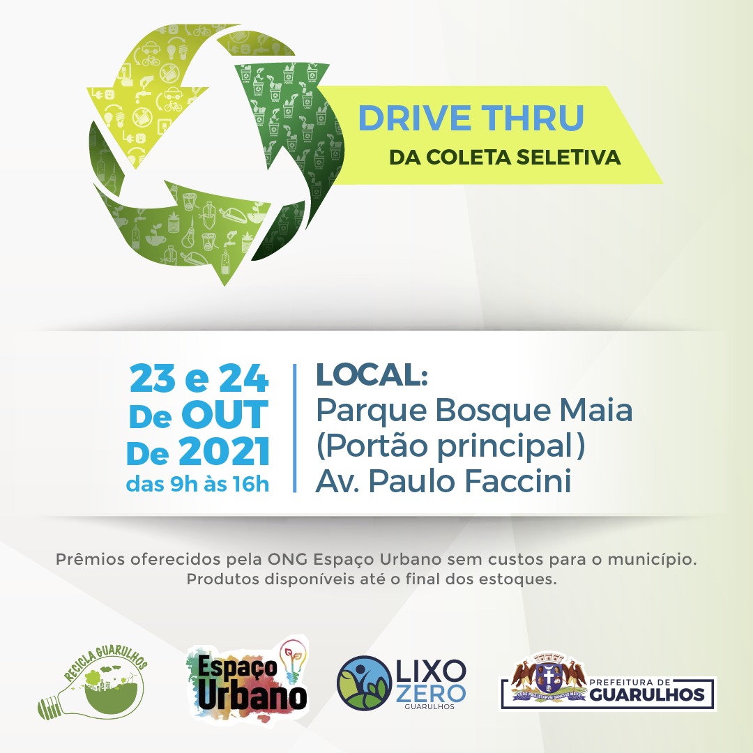 O drive-thru da coleta seletiva faz parte da programação Semana Lixo Zero 2021 realizada pela Secretaria de Serviços Públicos. Confira programação em http://lixozero.guarulhos.sp.gov.br/conteudo/semana-lixo-zero-2021.