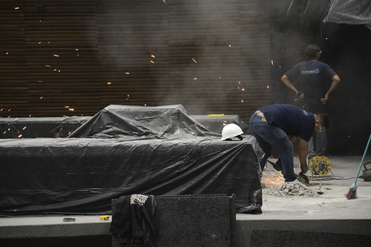 Imprensa CMG – O plenário da Câmara Municipal de Guarulhos está passando por obras para instalação de cabeamento estruturado. De acordo com o gestor de planejamento estratégico de Assuntos Administrativos, Verci Ferreira, a reforma fará a passagem dos conduítes para interligação do painel do plenário com as bancadas dos vereadores e os sistemas de áudio e vídeo. “Ou seja, essa interligação não existia, não houve previsão. Hoje, tivemos essa necessidade. Para ter o pleno funcionamento, foi preciso fazer essa obra de incisão de todos esses conduítes para poder interligar a Câmara com os nossos departamentos, audiovisual e painel de votação”, completou Verci.