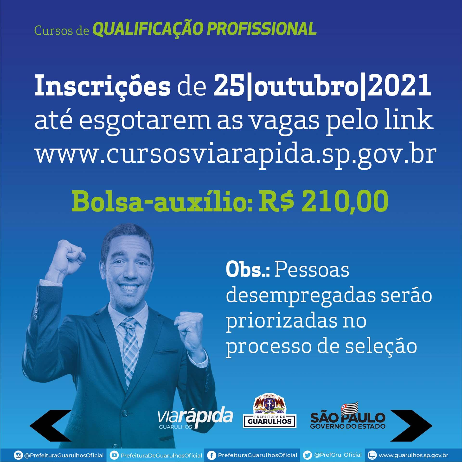 Da redação – A Secretaria do Trabalho de Guarulhos, por meio do programa Via Rápida Emprego, disponibiliza 120 vagas em cursos profissionalizantes em diversas áreas. As inscrições devem ser feitas pelo www.cursosviarapida.sp.gov.br, a partir desta segunda-feira (25) até o esgotamento das vagas.