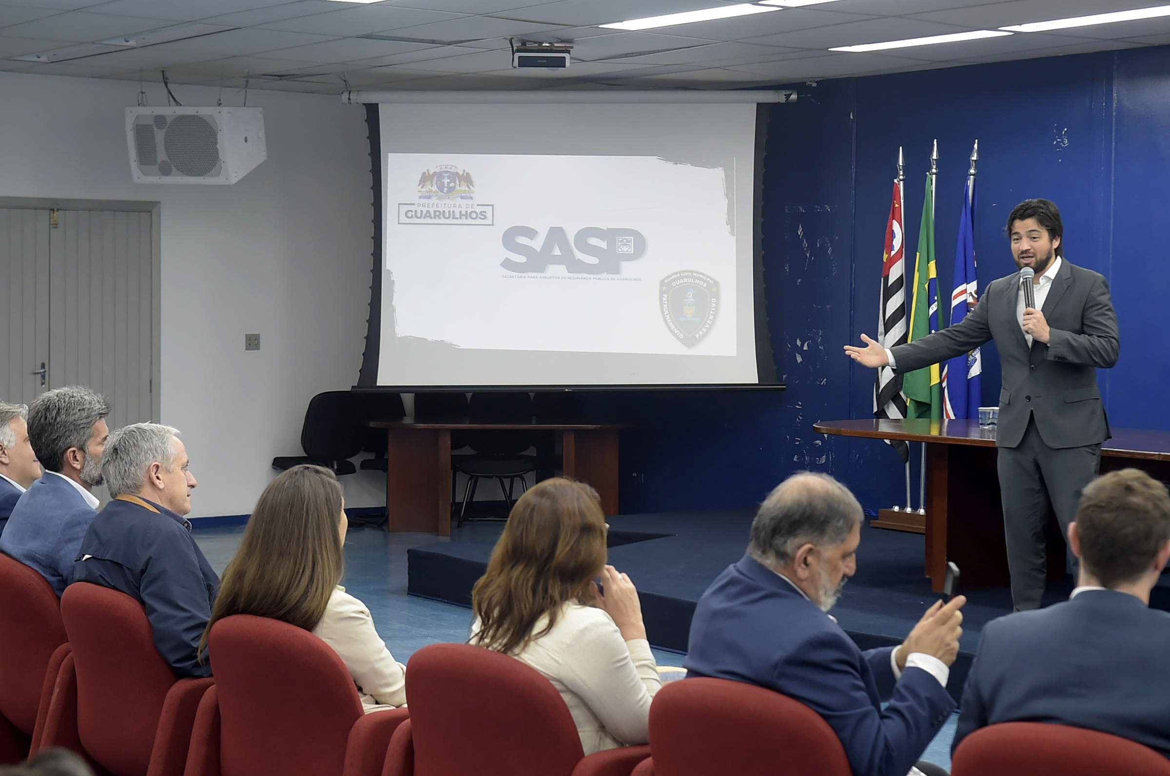 O prefeito de Guarulhos, Guti, recebeu nesta quarta-feira (24), no auditório do Paço Municipal, uma comitiva composta por prefeitos de sete cidades argentinas: Mendoza, Córdoba, General Pico, Zárate, Chascomús, San Salvador de Jujuy e San Miguel. A visita, que conta com o apoio da Fundação Universitária do Rio da Prata (FURP), tem como objetivo a troca de conhecimento e de experiência na área de tecnologia empregada pelo município em segurança pública, saneamento básico, mobilidade urbana, iluminação pública e iluminação pública.