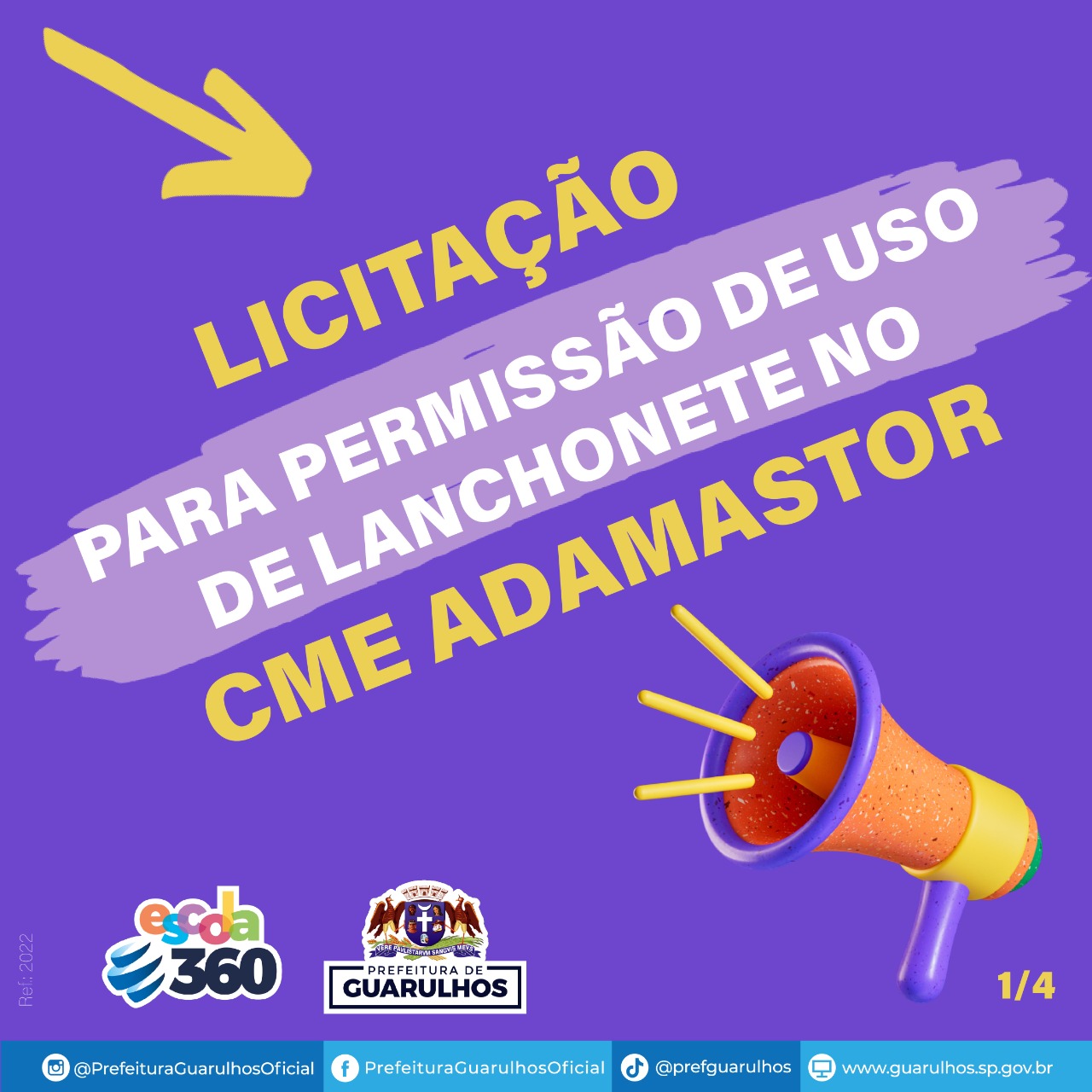 A Prefeitura de Guarulhos publicou no último dia 2 o edital de concorrência pública para permissão de instalação e funcionamento de lanchonete no Centro Municipal de Educação Adamastor, no Macedo. O edital e anexos com especificações estão disponíveis no link https://licitacoes.guarulhos.sp.gov.br/todaslicitacoes/, na modalidade “Concorrência”, pelo nº 50/22-DLC.