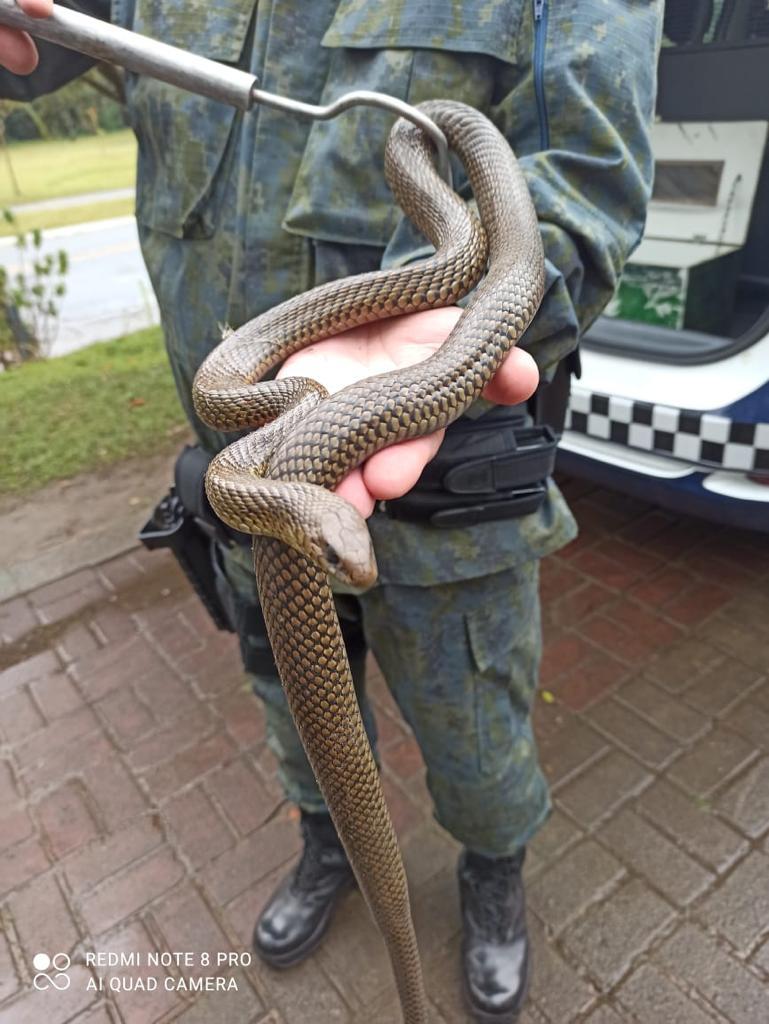 A serpente foi encaminhada em segurança para um local de soltura, longe de áreas habitadas. Apesar de ser considerada não peçonhenta, a espécie pode ser agressiva, produz veneno e possui dentes inoculadores no fundo da boca, o que pode causar acidentes de leves a moderados, já que o seu veneno é pouco ativo em seres humanos. Além disso, a parelheira-do-mato é ovípara, tem hábitos diurnos e alimenta-se de pequenos vertebrados, como rãs, ratos e aves.