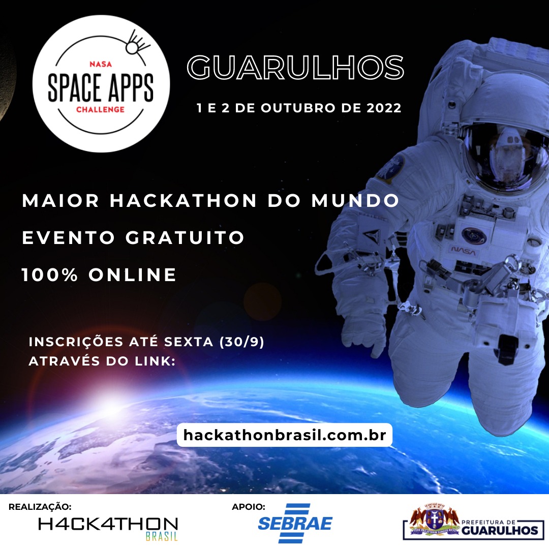 Guarulhos é uma das cidades credenciadas para participar do Hackathon Internacional, evento promovido pela Nasa, a agência espacial norte-americana. O Space Apps Challenge está na 11ª edição, acontecerá no dias 1º e 2 de outubro e contará com a participação de diversas agências espaciais, incluindo a Agência Espacial Brasileira (AEB). Participarão programadores, empreendedores, cientistas, designers e tecnólogos, que terão a oportunidade de criar soluções com dados de satélites fornecidos pelas entidades.