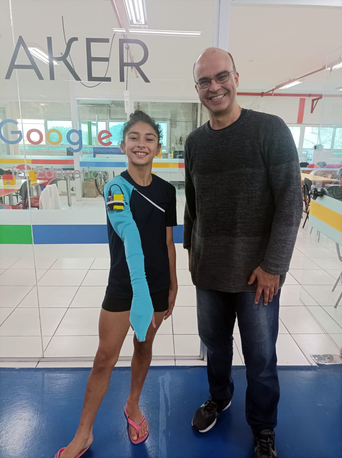 A vestimenta foi testada pela atleta Lara Santana Vicente, que pratica ginástica artística desde os cinco anos e participou da atividade com o grupo. “As crianças foram muito criativas em pensar isso. A roupa tem uma bateria que fica na parte de cima da manga e um fio dentro que vai até o dedo, mas não atrapalha para fazer os exercícios”, disse a aluna de 11 anos que cursa o 5º ano.