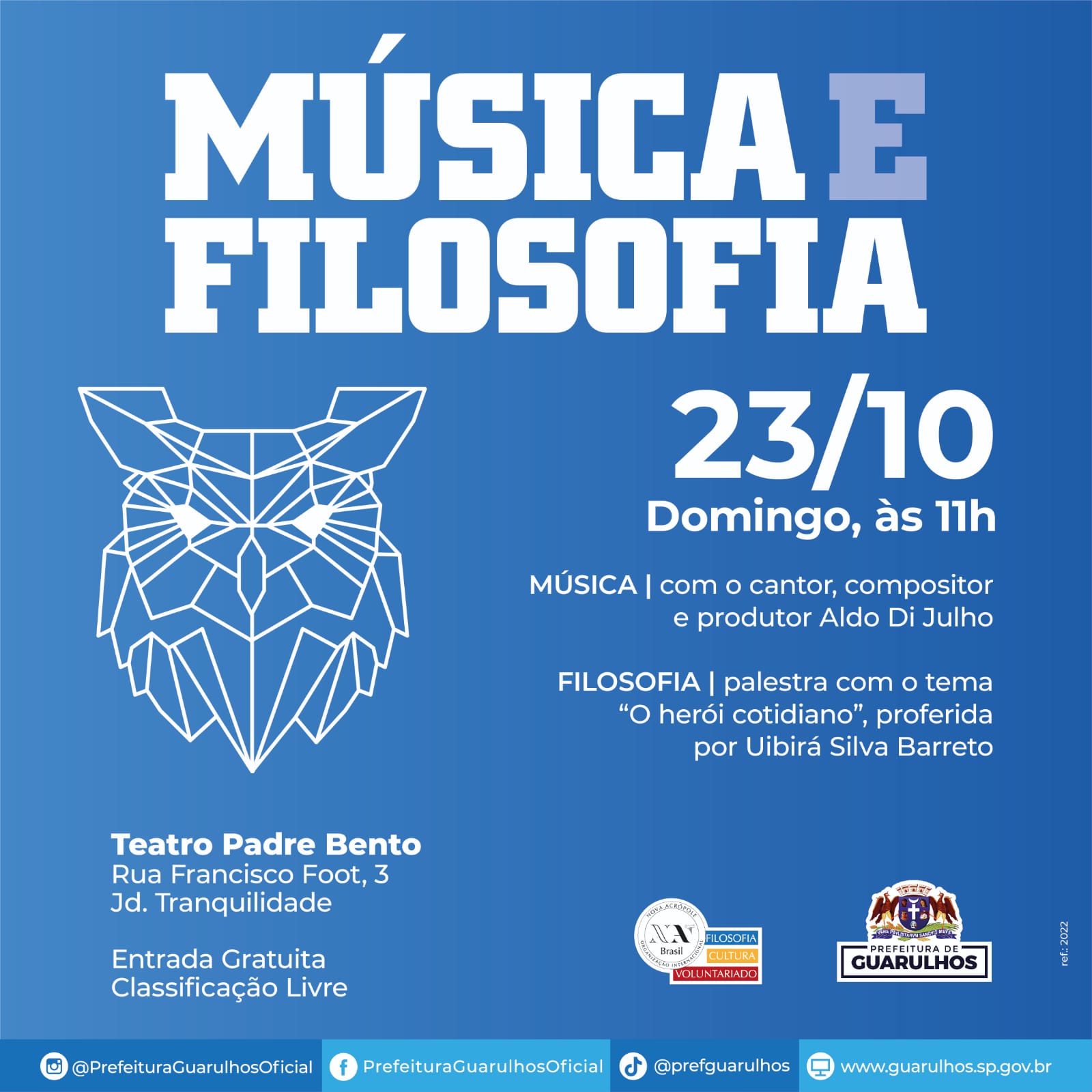 No próximo domingo (23), às 11h, o Teatro Padre Bento, no Jardim Tranquilidade, recebe encontro do projeto Música e Filosofia sobre o tema O Herói Cotidiano, com o palestrante Uibirá Silva Barreto, diretor da Nova Acrópole. O evento é uma oportunidade para que os participantes troquem experiências e aprofundem os estudos de formação humanística. A entrada é gratuita e a classificação, livre.