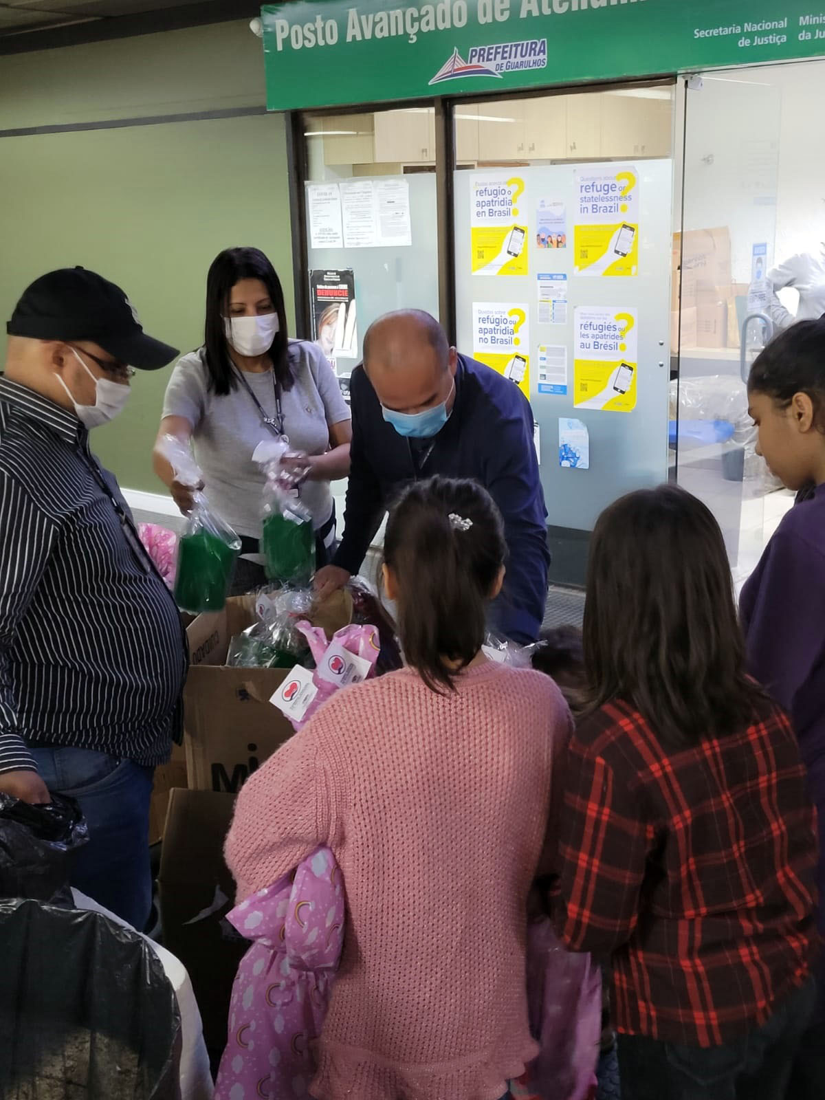 O Fundo Social de Solidariedade (FSS) de Guarulhos realizou nesta quarta-feira (21) a entrega de cem kits de higiene para os afegãos que estão no aeroporto aguardando acolhimento. O kit contém shampoo, condicionador, pomada para assadura, sabonete líquido ou em barra e repelente de insetos. Além disso, cerca de 50 brinquedos, como carrinhos e bonecas, foram distribuídos para as crianças que estão no local.