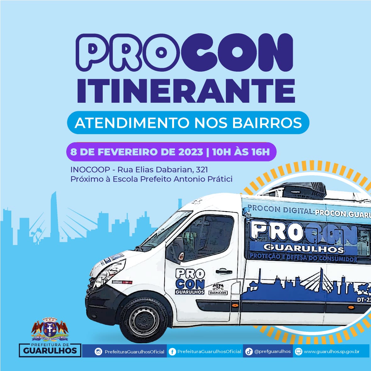 Os moradores do Inocoop terão o atendimento da van da Coordenadoria de Proteção e Defesa do Consumidor de Guarulhos nesta quarta-feira (8), que estará estacionada na rua Elias Dabarian, 321, próxima à Escola Estadual Prefeito Antonio Prátici, das 10h às 16h. O veículo do Procon Guarulhos disponibiliza os mesmos serviços prestados nas unidades fixas e todas as quartas-feiras atende em um bairro diferente.