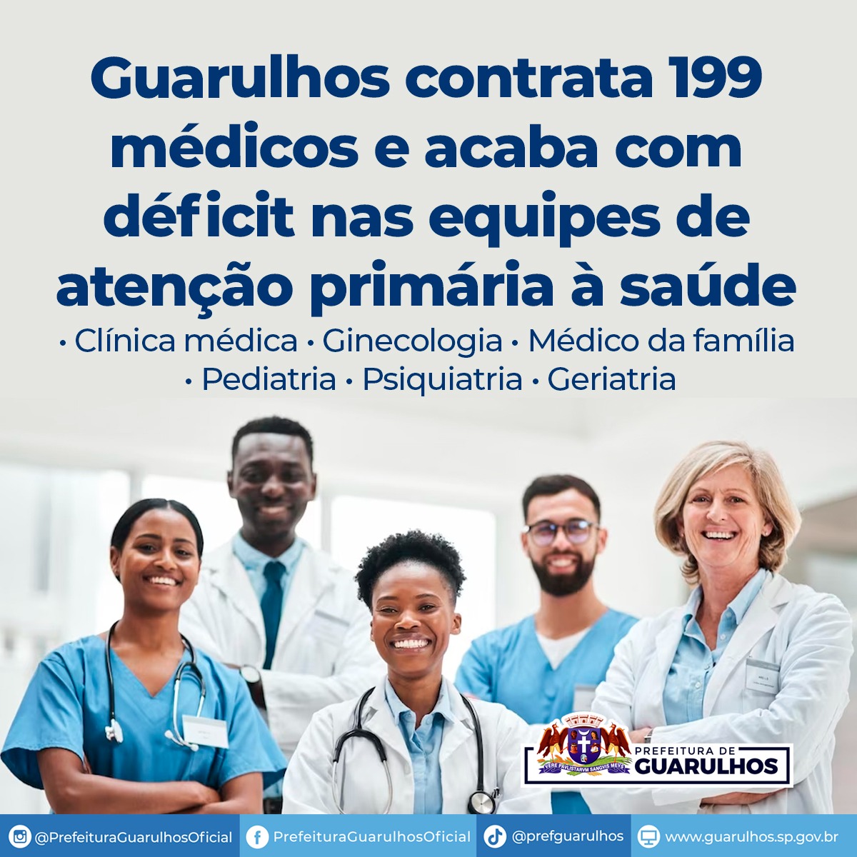 Desde dezembro do ano passado 199 médicos foram contratados pela Prefeitura de Guarulhos a fim de suprir as demandas de saúde do município na atenção primária à saúde e na atenção especializada. Além disso, as 48 Unidades Básicas de Saúde (UBS) que contam com equipes de estratégia de saúde da família passaram a ter seus quadros médicos completos.