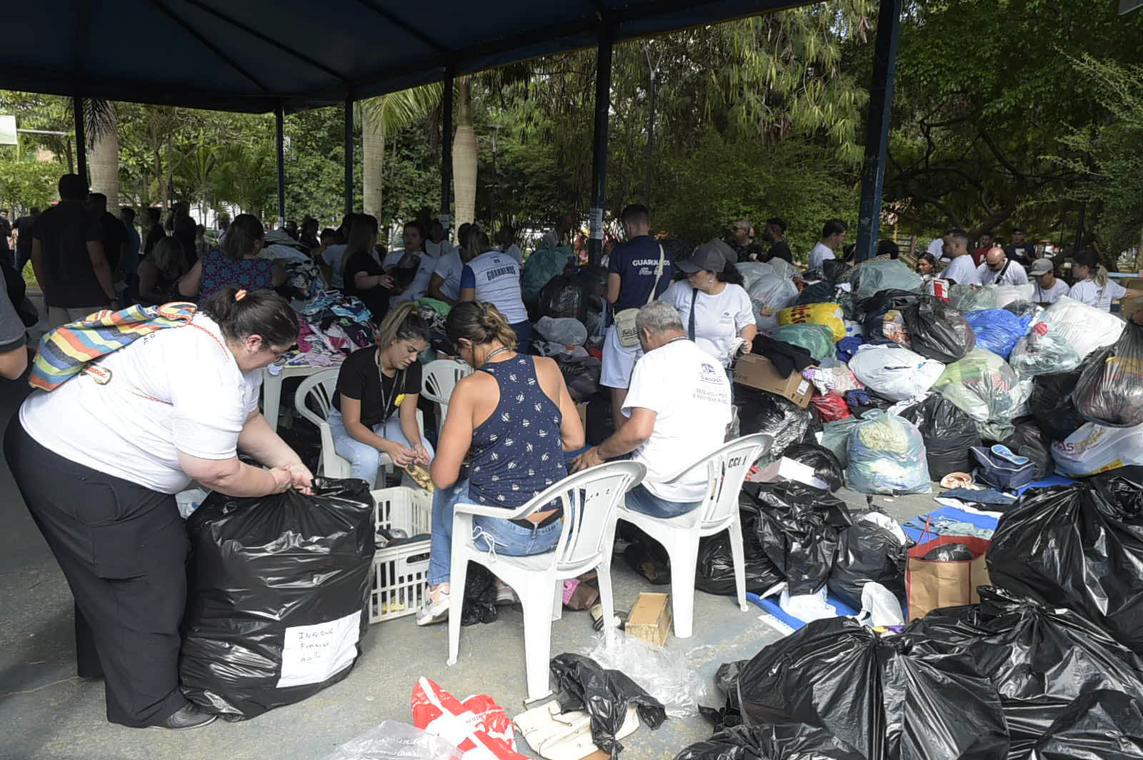 Desde o dia 22 de fevereiro a ação já arrecadou 54 toneladas de doações entre alimentos, água, roupas, produtos de higiene e limpeza, ração e equipamentos de proteção individual. Os pontos de arrecadação no Bosque Maia e no CIC Pimentas foram desativados neste domingo (26).
