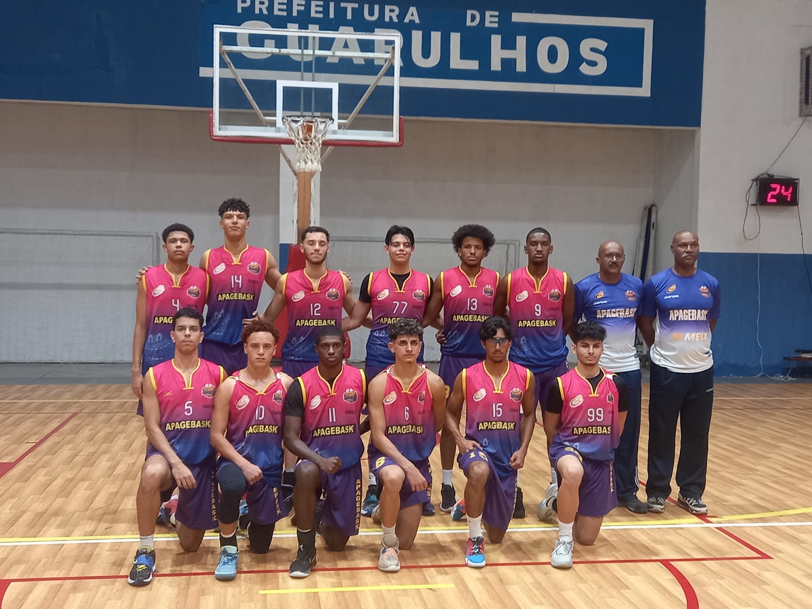 A equipe de basquete masculina Apagebask Guarulhos venceu seu segundo compromisso pelos Jogos da Juventude. A partida aconteceu na noite desta terça-feira (4) no ginásio João do Pulo, no Jardim Divinolândia, e terminou com uma ampla vantagem de 77 a 10 contra Cajamar. Os atletas Matheus Gomes e Willker foram os cestinhas do jogo, com 12 e 10 pontos, respectivamente.