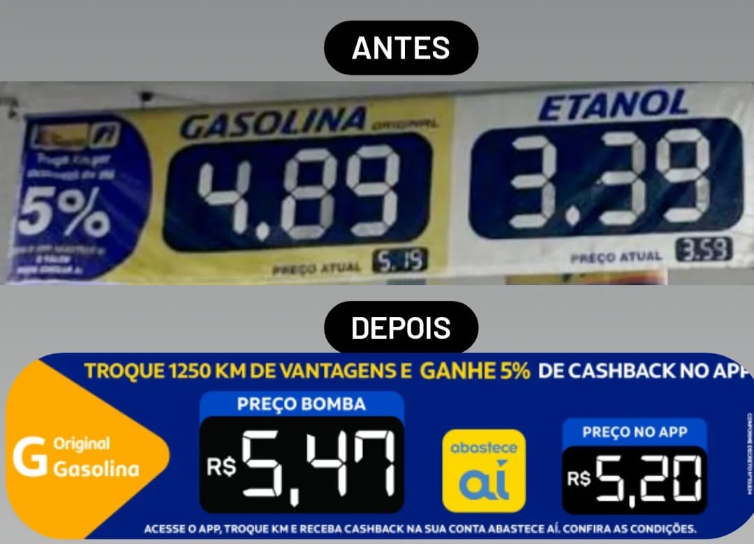 O acordo prevê que as placas indiquem a quilometragem necessária para a obtenção do bônus de 5% pelo aplicativo Abastece Aí e contenha a frase “Troque 1.250 km vantagens e ganhe 5% de cashback no app”. Além disso, elas devem informar o preço real da bomba em caracteres ampliados e o preço promocional reduzido com o uso do APP, evitando que o consumidor seja levado a erro no ato do abastecimento.