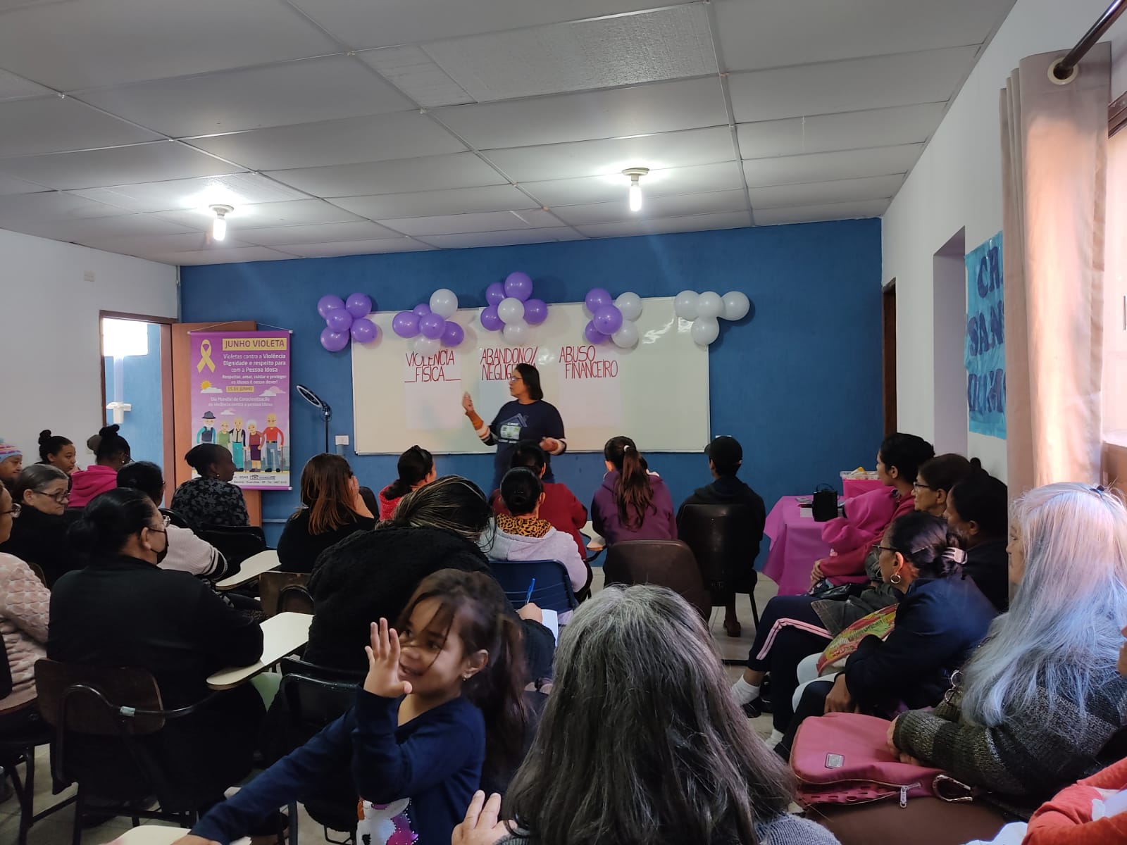 Em referência ao Junho Lilás, mês que aborda a conscientização e o combate à violência contra a pessoa idosa, o Centro de Referência da Assistência Social (Cras) Santos Dumont reuniu pessoas do segmento e seus familiares para dialogar sobre o tema em uma roda de conversa coordenada pela supervisora e assistente social da unidade, Simone Alecsandra Rosa. Os cerca de 50 munícipes que participaram da atividade são atendidos e acompanhados pelas equipes da unidade.