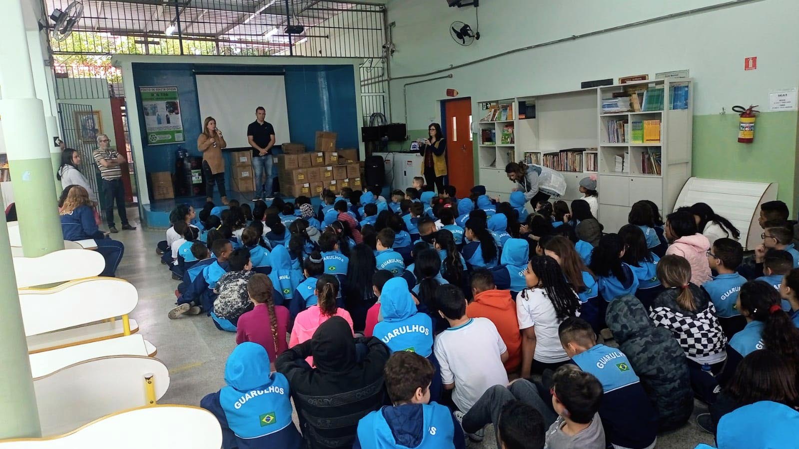 Estudantes da Escola da Prefeitura de Guarulhos Dalva Marina Mingossi, na Vila Barros, aprenderam um pouco mais sobre os cuidados necessários para manter o bem-estar físico e emocional dos animais de estimação, especialmente cães e gatos, durante as palestras promovidas pelo Educa Pet, programa desenvolvido pelo Departamento de Proteção Animal (DPAN) da Secretaria de Meio Ambiente.