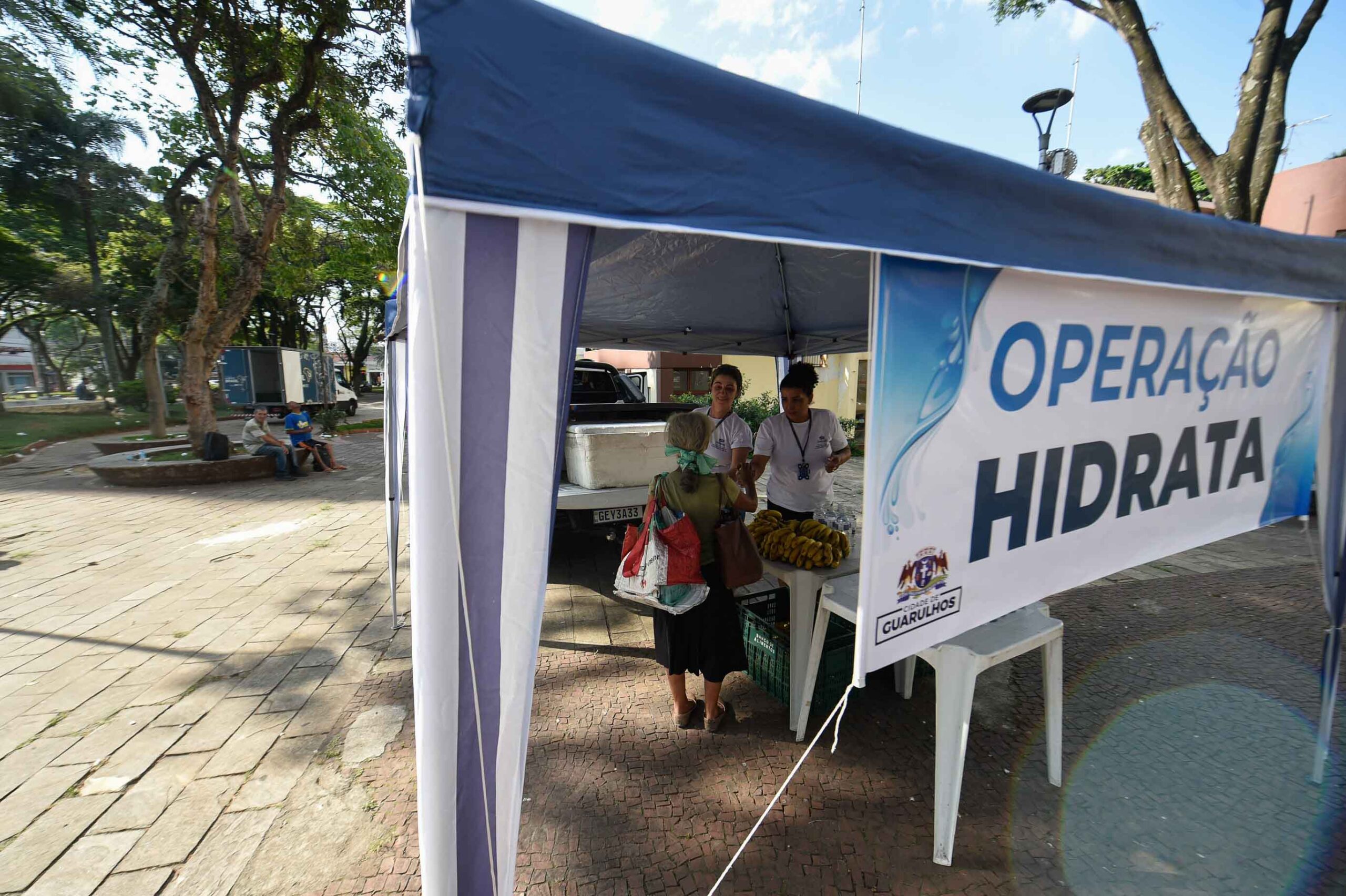 Diante da onda de calor extremo registrada nos últimos dias em Guarulhos, com o termômetro batendo 38 graus em alguns locais da cidade, a Prefeitura deu início à Operação Hidrata na última quinta-feira (21). O programa distribui água e frutas para pessoas em situação de rua e de vulnerabilidade que passarem pela tenda montada na praça Getúlio Vargas, no Centro, diariamente a partir das 13h.