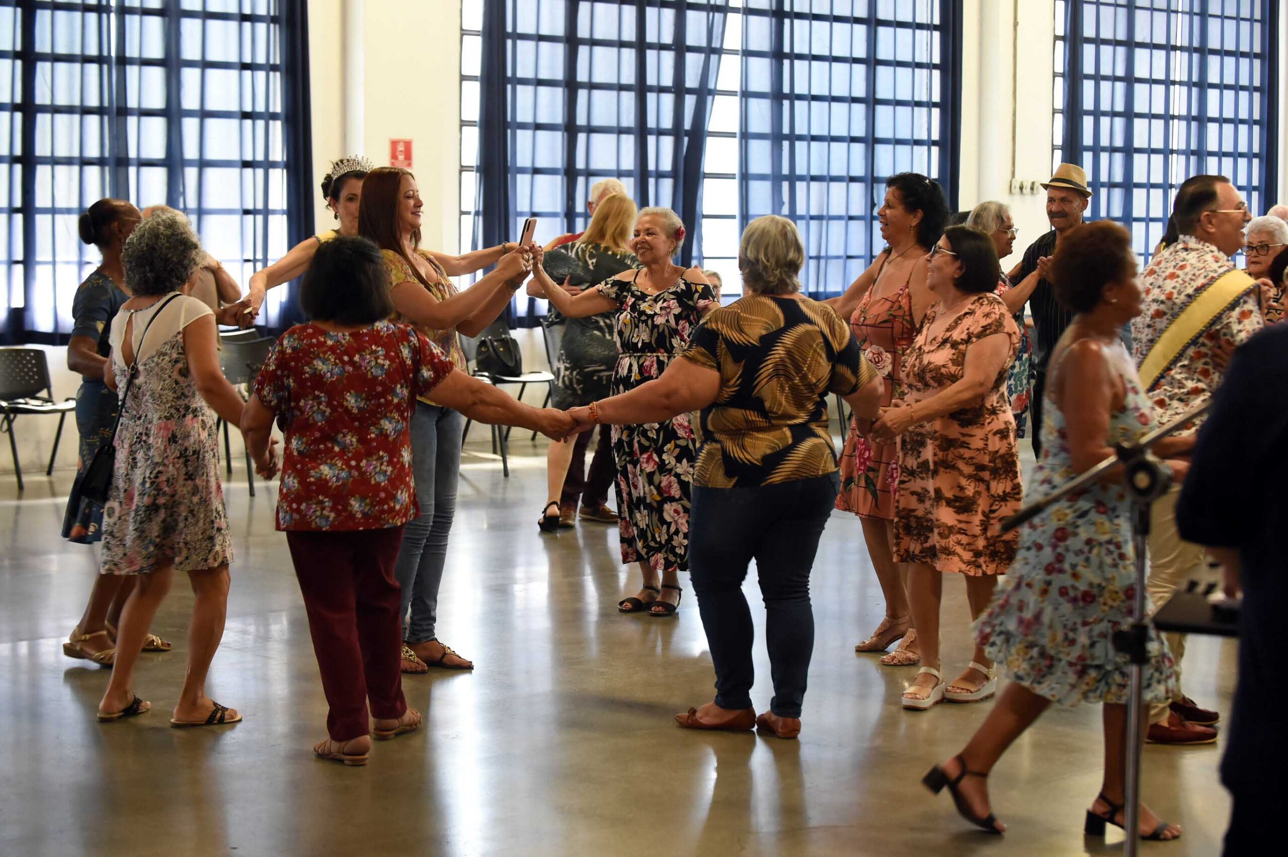 Mais de 300 idosos se reuniram na tarde da última sexta-feira (22) para celebrar a chegada da primavera em um baile no Adamastor. A festa foi organizada pelos Centros de Convivência do Idoso (CCIs) Santa Mena e Gopoúva e aconteceu pela primeira vez em três anos, já que o projeto estava interrompido por conta da pandemia.