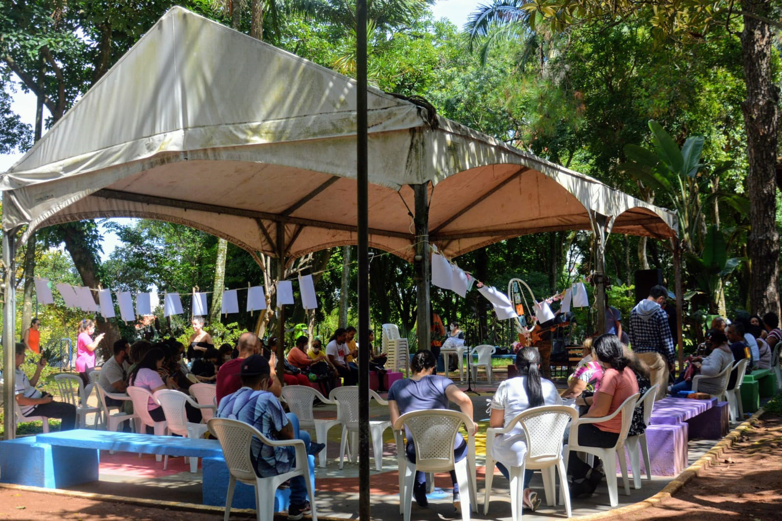 Na manhã da próxima sexta-feira (26) a Prefeitura de Guarulhos promoverá a 6ª edição do Sarau no Parque Júlio Fracalanza. A ação apresenta-se como uma atividade intersetorial de pertencimento, convívio e fortalecimento de laços sociais por meio da perspectiva do cuidado integral com o enfoque em atividades socioculturais, como música, poesia e dança. Não será necessária inscrição para participar.