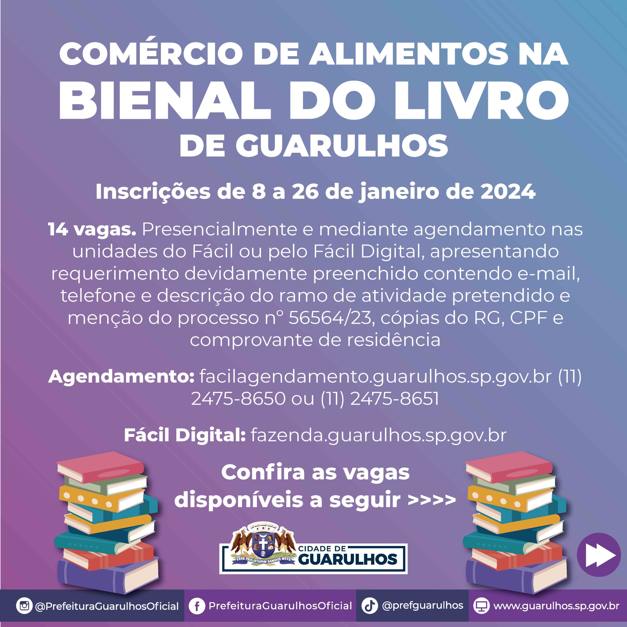 Inscrições para o comércio de alimentos na Bienal do Livro de Guarulhos vão até o dia 26