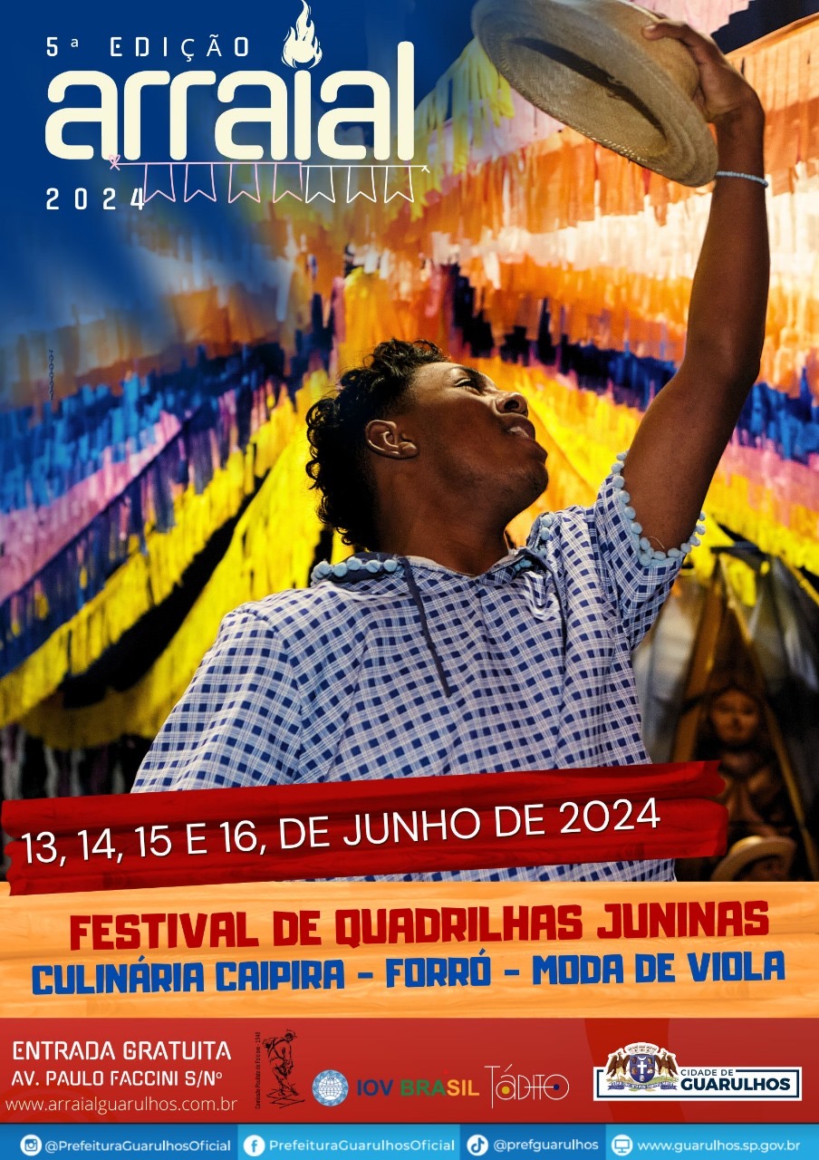 Entre os dias 13 e 16 de junho o Bosque Maia será palco da quinta edição do Arraial Guarulhos, grande encontro que celebra a cultura caipira, tropeira e nordestina na cidade. A festa, assim como aconteceu em 2023, contará com a presença do movimento quadrilheiro paulista, violeiros, sanfoneiros, forrozeiros e muita culinária afetiva, que promete riqueza e diversidade em temperos e espetáculos.
