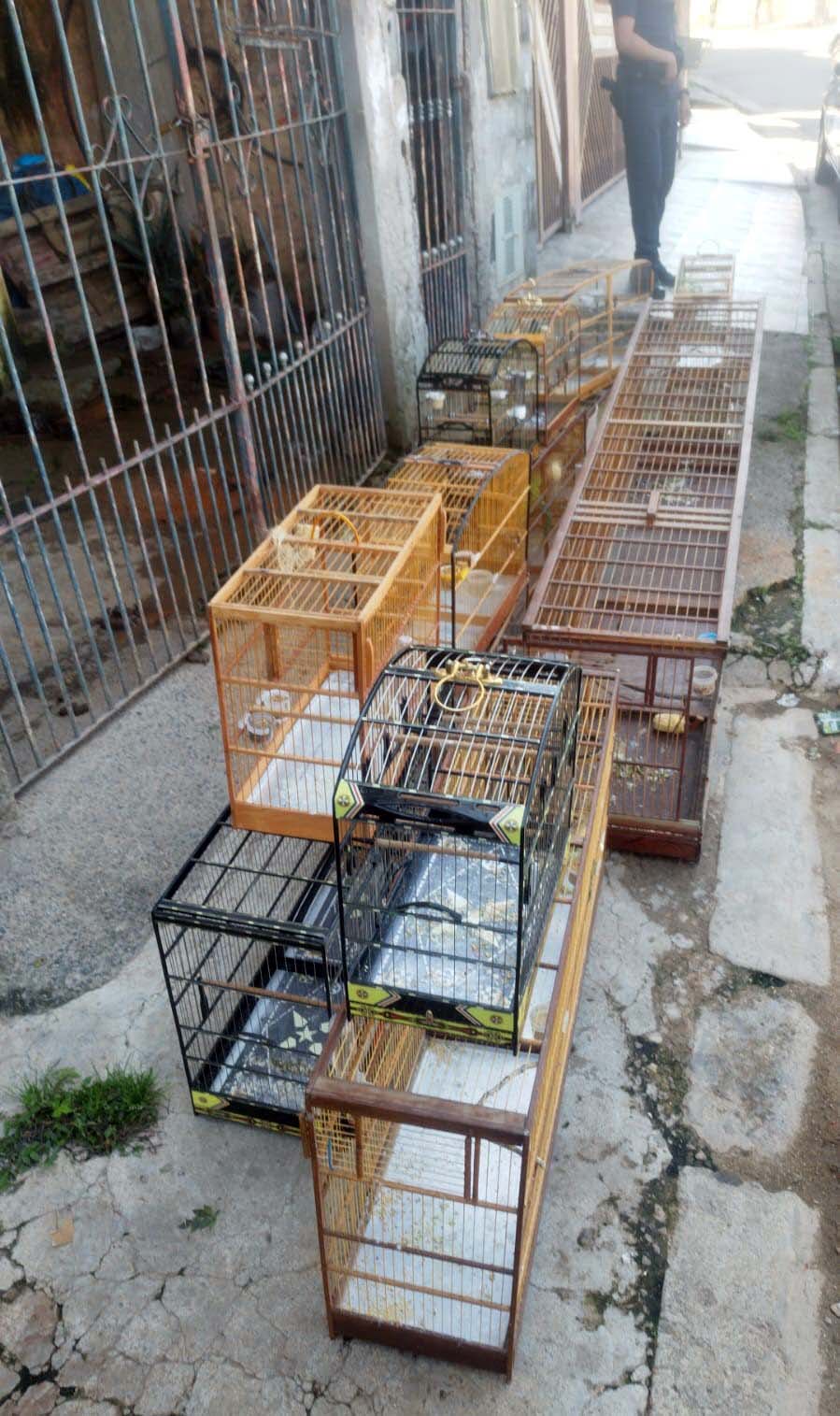 No segundo caso, agentes em patrulhamento preventivo pela avenida Bom Jesus, no Jardim São João, depararam com 13 gaiolas e quatro pássaros silvestres expostos em uma residência, dois da espécie coleirinha e dois papa-capim, em cativeiro ilegal e com indícios de adulteração das anilhas.