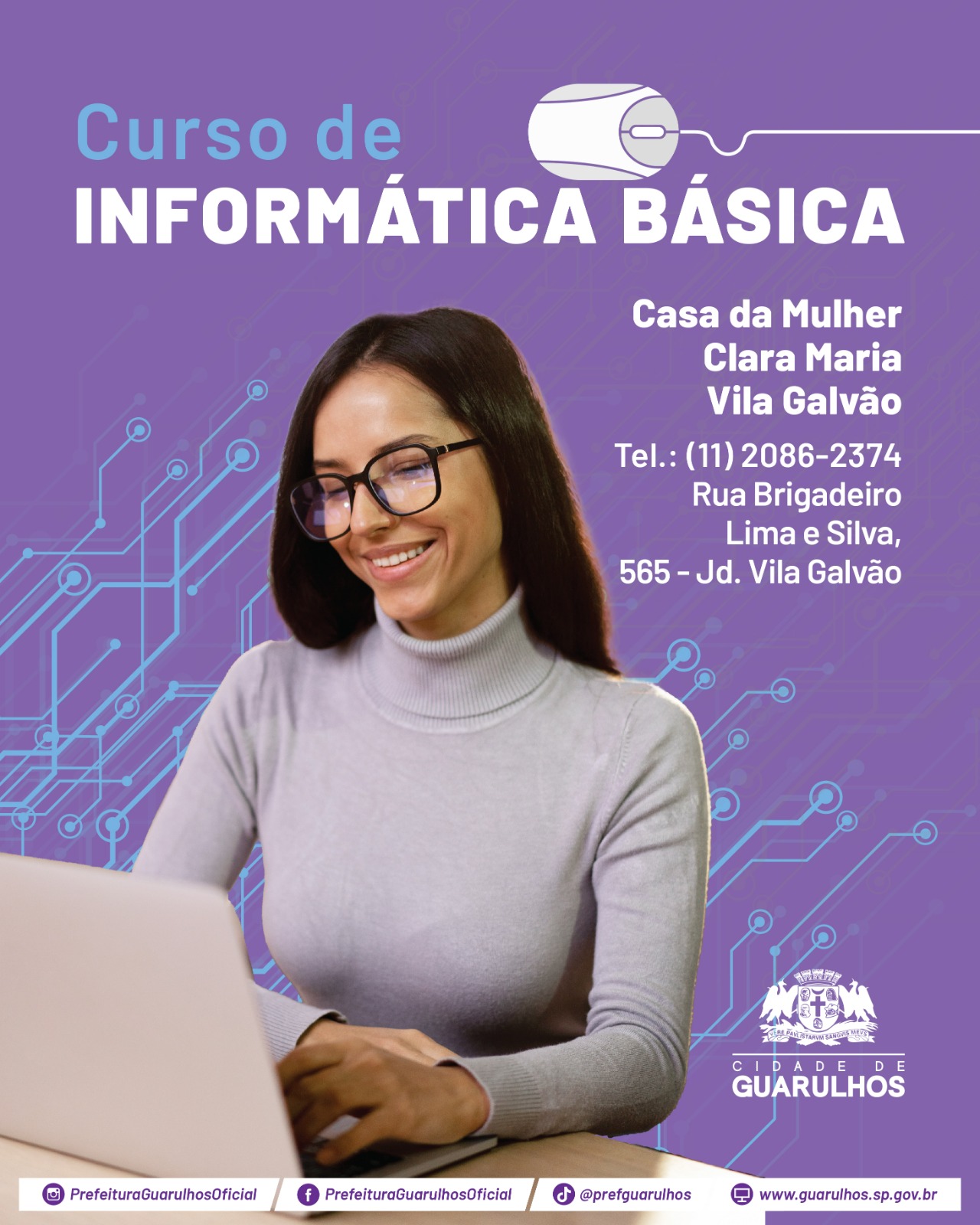 A partir de segunda-feira (10) a Prefeitura de Guarulhos inicia o curso gratuito de costura e conserto na Casa da Mulher Clara Maria Vila Galvão para as 26 inscritas, divididas em duas turmas. Na quarta-feira (12) as aulas começam para outras 26 que se inscreveram em informática básica. As aulas serão ministradas por profissionais voluntários.