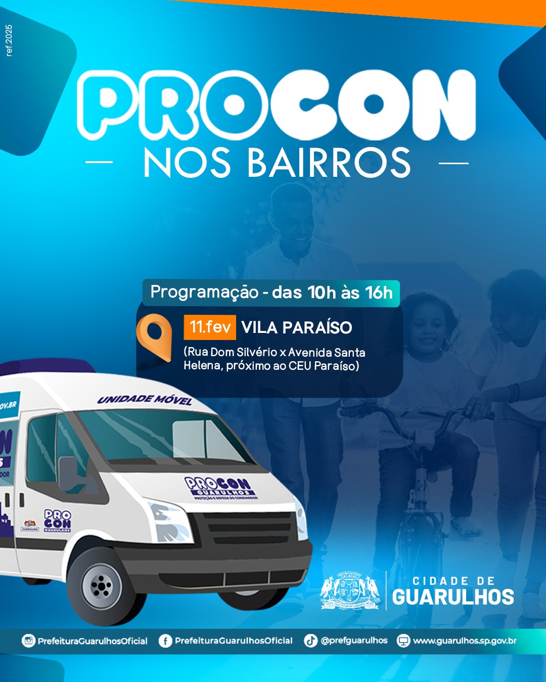 A unidade móvel do projeto Procon nos Bairros estará na próxima terça-feira (11) na Vila Paraíso (rua Dom Silvério com a avenida Santa Helena), próxima ao CEU Paraíso, para atender a população da região das 10h às 16h. O veículo da Coordenadoria de Defesa e Proteção do Consumidor leva toda semana a um bairro diferente do município os mesmos serviços executados nas agências fixas do Procon Guarulhos.