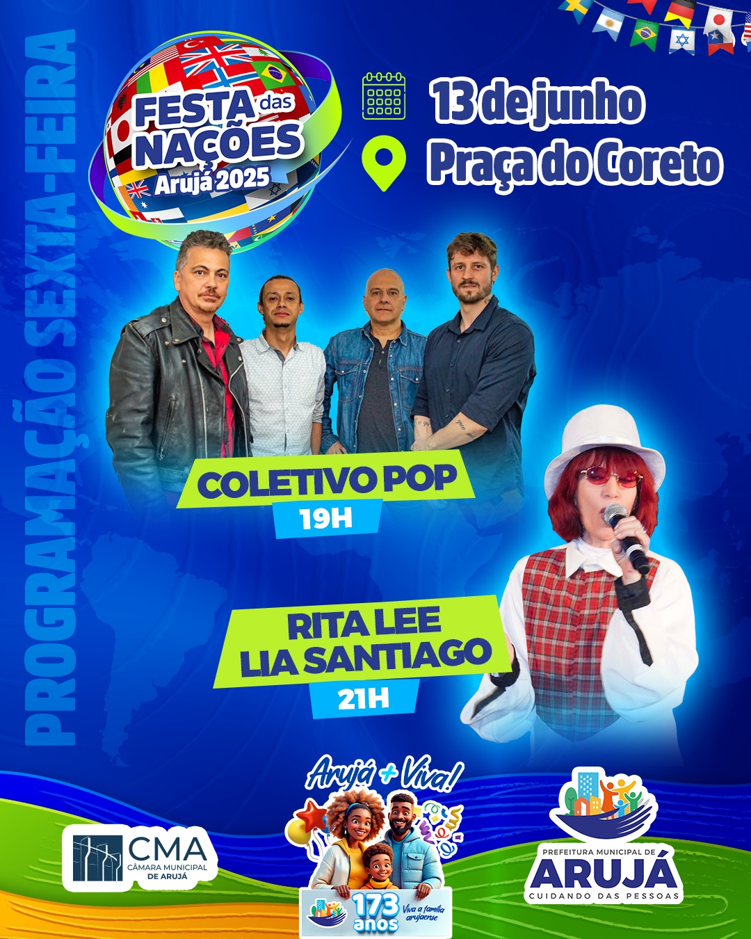 Organizada pela Prefeitura de Arujá, por meio da Secretaria Municipal de Cultura, o evento conta com shows musicais de artistas locais e convidados.