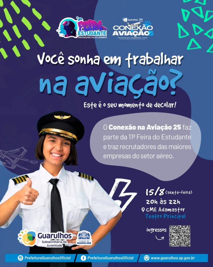 Haverá ainda captação de currículos para as pessoas que desejam entrar no mundo da aviação. Para participar da Conexão da Aviação é necessário retirar previamente os ingressos gratuitos no link https://www.sympla.com.br/evento/conexao-na-aviacao-25-11-feira-do-estudante-de-guarulhos/3045417?referrer=www.guarulhos.sp.gov.br.
