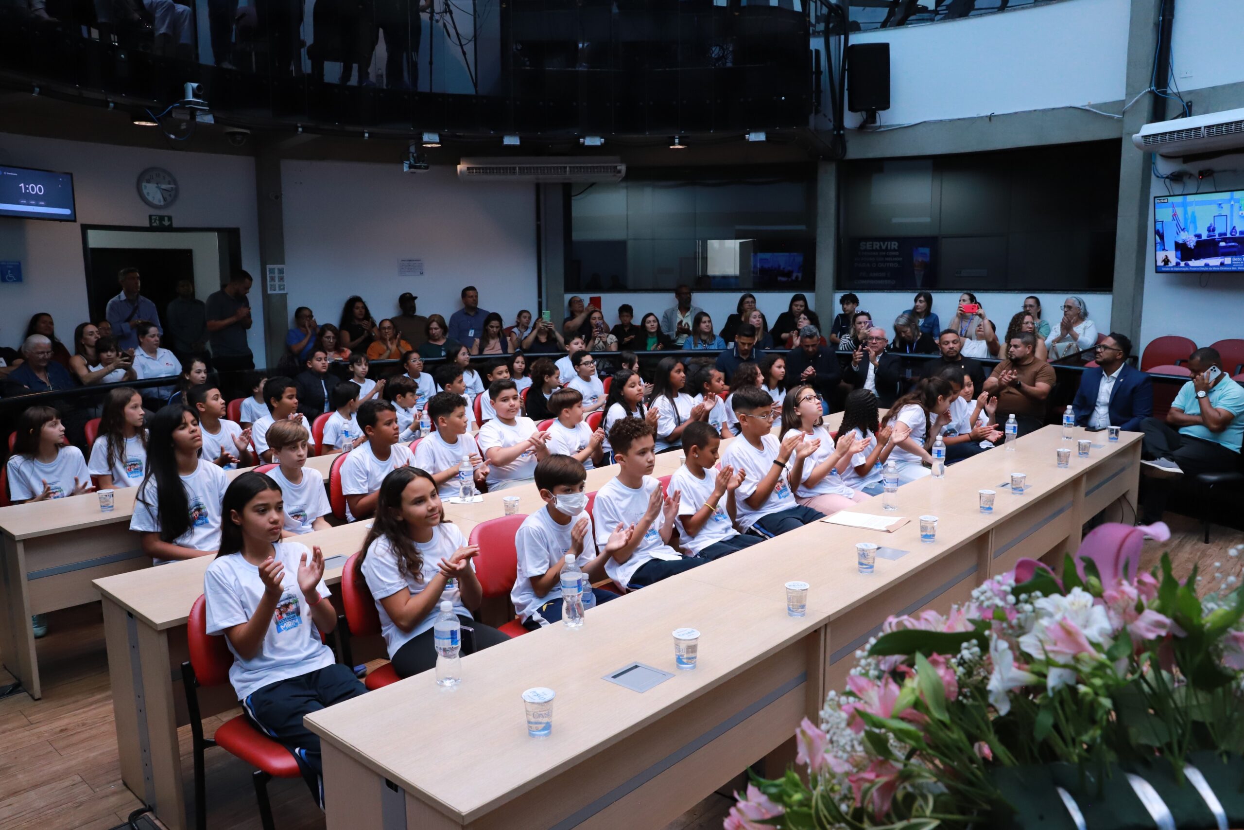 O evento reuniu no plenário dezenas de estudantes, familiares e autoridades públicas, que acompanharam com entusiasmo cada momento da solenidade. Após a diplomação e posse, os vereadores mirins participaram da votação para escolha da Mesa Diretora, elegendo Presidente, Vice-Presidente, 1º e 2º Secretários.