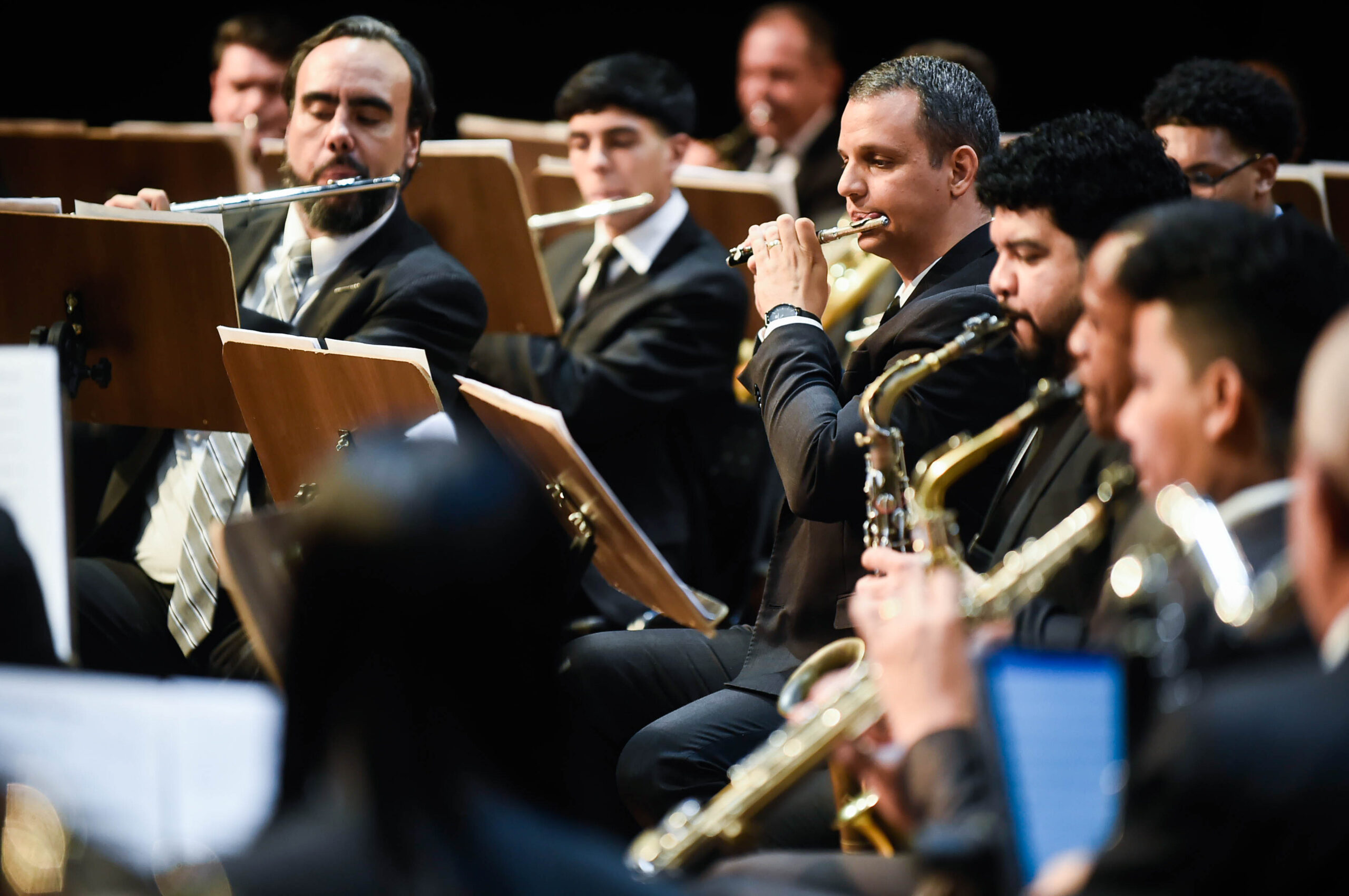 Com mais de 60 músicos no palco, a Banda Sinfônica de Guarulhos é um conjunto musical que se caracteriza pela predominância de instrumentos como flautas, clarinetes, saxofones, trompetes, trombones e tubas, além dos instrumentos de percussão.