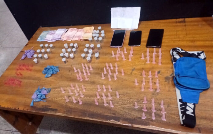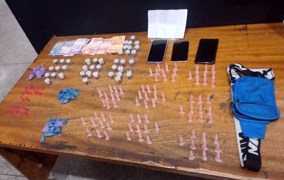 Já no Jardim Monte Alegre, a equipe encontrou uma sacola abandonada por um suspeito que conseguiu fugir. Dentro estavam 153 porções de maconha e 123 de cocaína, totalizando 650 gramas de entorpecentes.