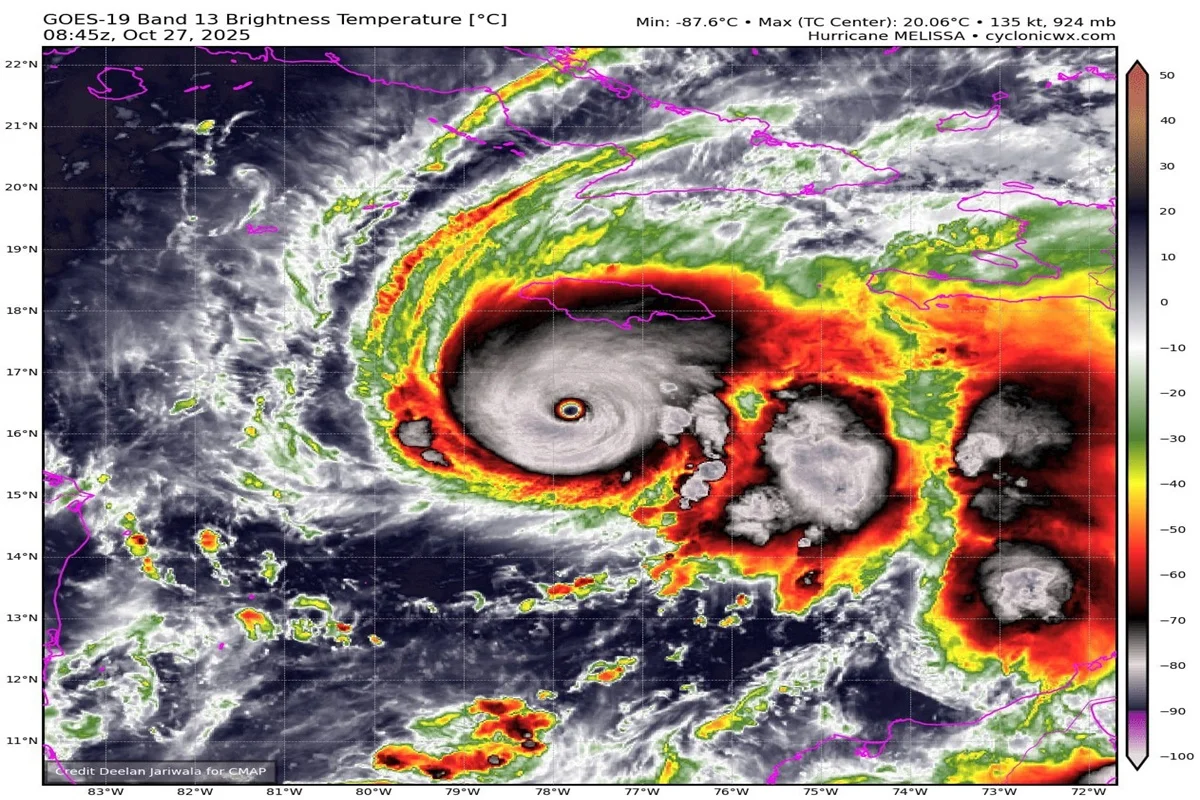 Com ventos de 295 km/h, chamados de “catastróficos” por meteorologistas, e pressão interna de 892 mb – a terceira maior já registrada – o Melissa chegou à Jamaica pelo noroeste do país.