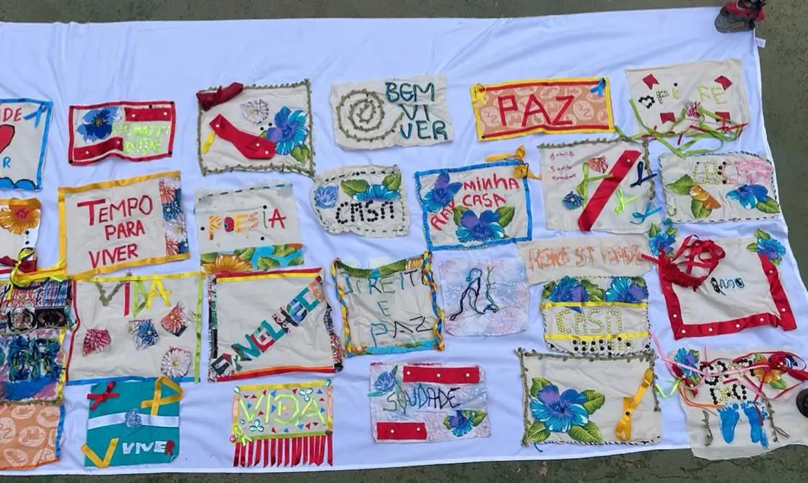Nas mãos, elas vão levar um estandarte, feito de forma coletiva, e que carrega os anseios e sonhos dessas e de tantas outras mulheres negras que estarão em marcha por reparação e bem viver.