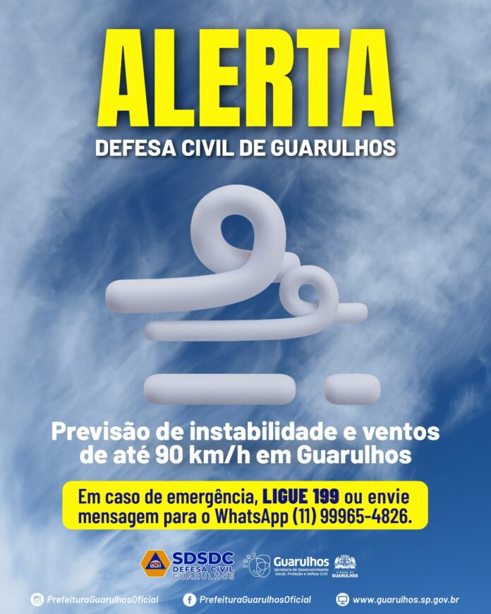 A Prefeitura de Guarulhos mobilizou equipes de emergência para atuarem no evento climático desde o início da manhã. A Subsecretaria de Proteção e Defesa Civil atendeu 65 ocorrências até a tarde desta quarta-feira, sendo 50 quedas de árvores, 10 destelhamentos, 4 riscos estruturais (muros e fachadas) e 1 poste energizado comprometido. Duas vítimas com escoriações leves foram atendidas pelo SAMU.