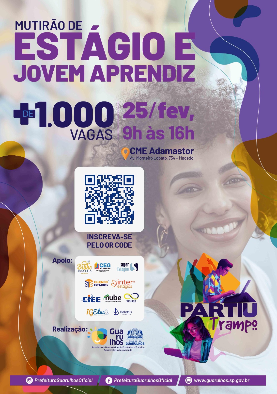 O Centro Municipal de Educação Adamastor (avenida Monteiro Lobato, 734 – Macedo) receberá nesta quarta-feira (25) o Mutirão Volta às Aulas, iniciativa da Prefeitura de Guarulhos que irá oferecer mais de 1.000 vagas de estágio e Jovem Aprendiz destinadas a estudantes dos ensinos médio e superior com idade entre 15 e 29 anos.