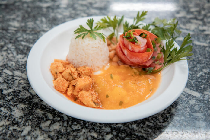 Cuidadosamente elaborado pelos nutricionistas do Departamento de Alimentação Escolar (DAE) da Secretaria de Educação, o cardápio daquele dia combinou arroz, feijão, frango refogado e purê de mandioquinha, contemplando uma variedade de alimentos e preparações, prática que objetiva incentivar a experimentação de novos sabores, aromas e texturas, contribuindo para a formação de hábitos alimentares saudáveis.