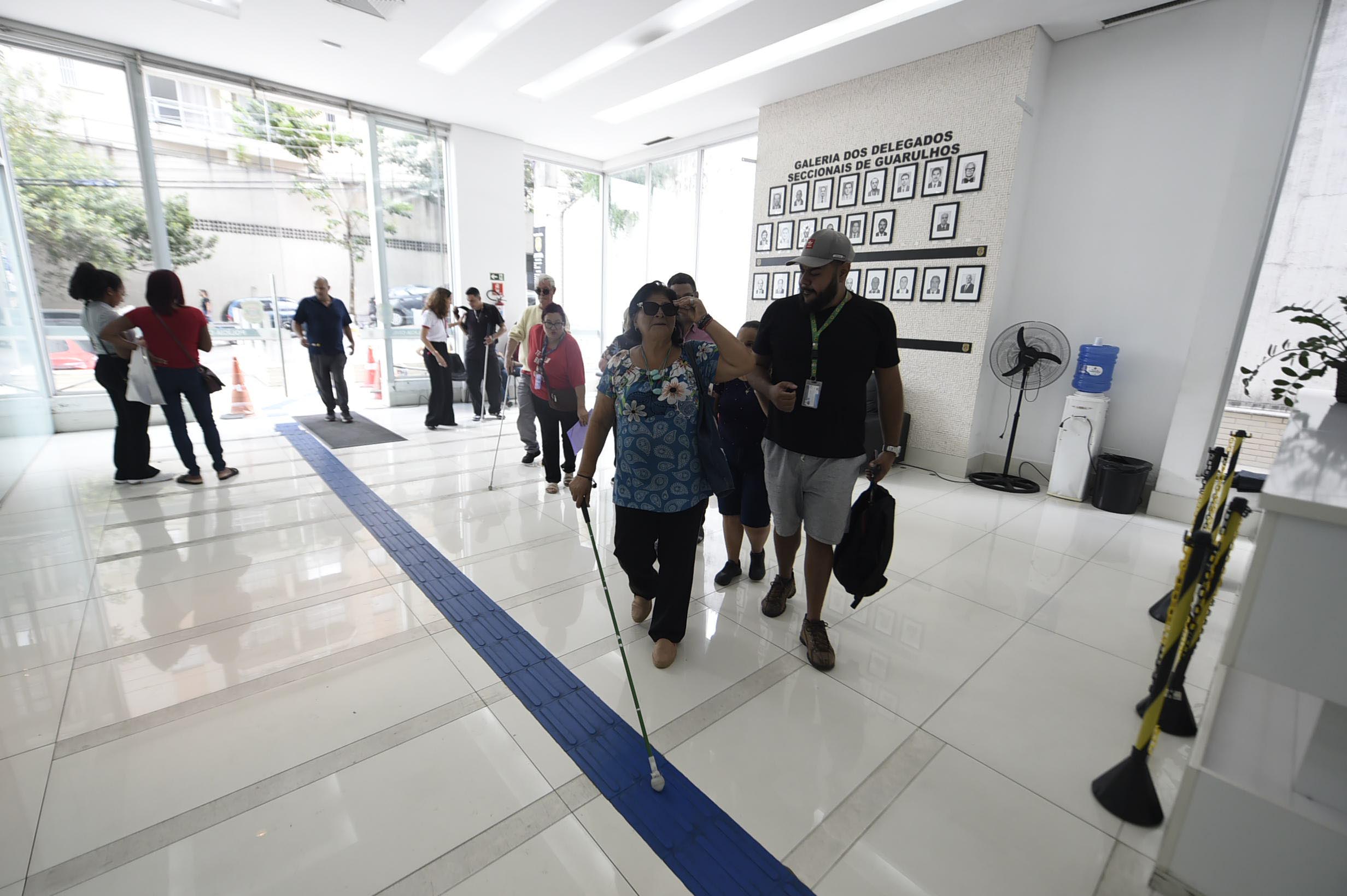 Nesta quarta-feira (8) um grupo de 13 deficientes visuais do projeto Práticas Educativas para a Inclusão Social (Peis), desenvolvido pela Prefeitura de Guarulhos através da Subsecretaria de Acessibilidade e Inclusão, conheceu o Centro de Apoio Técnico para Pessoas com Deficiência (CAT), localizado na Delegacia Seccional de Polícia de Guarulhos, na Vila Camargos.